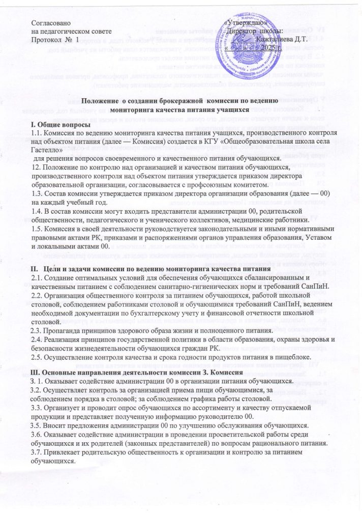 Положение о создании брокеражной комиссии по ведению мониторинга качества питания учащихся