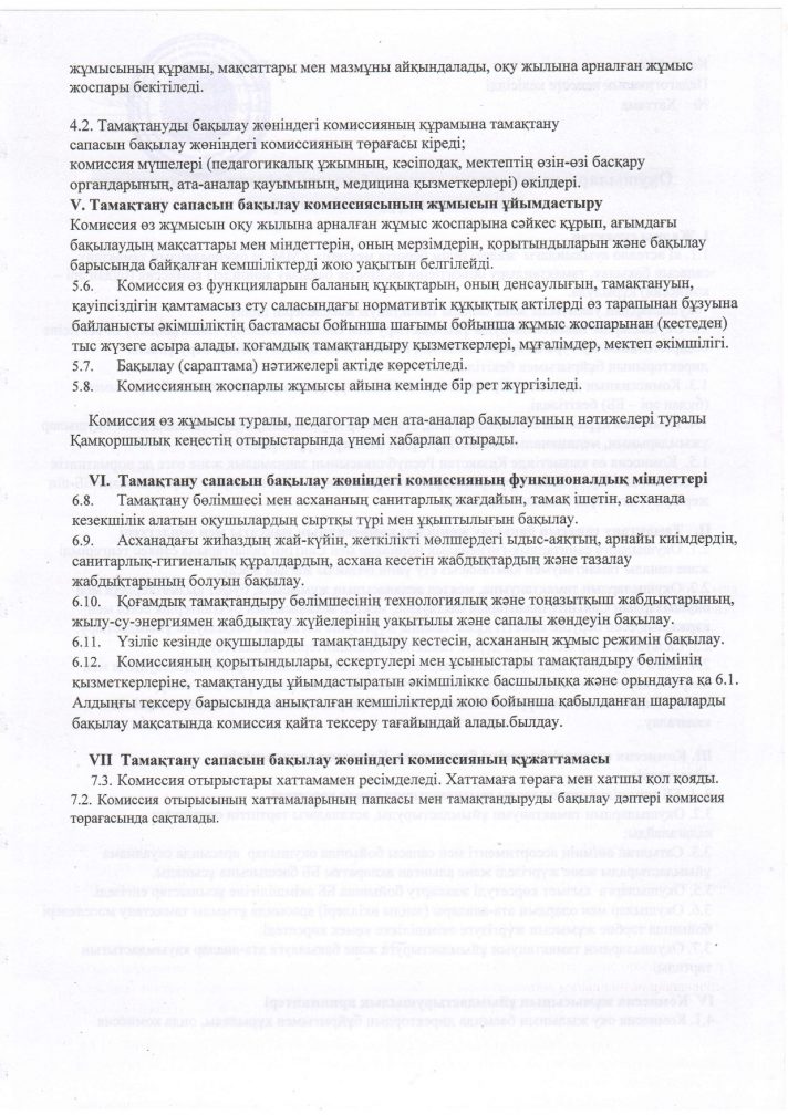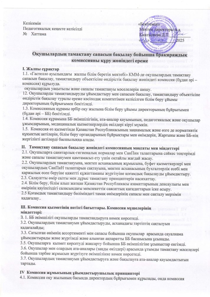 Оқушылардың тамақтану сапасын бақылау бойынша бракираждық комиссияны құру жөніндегі ереже