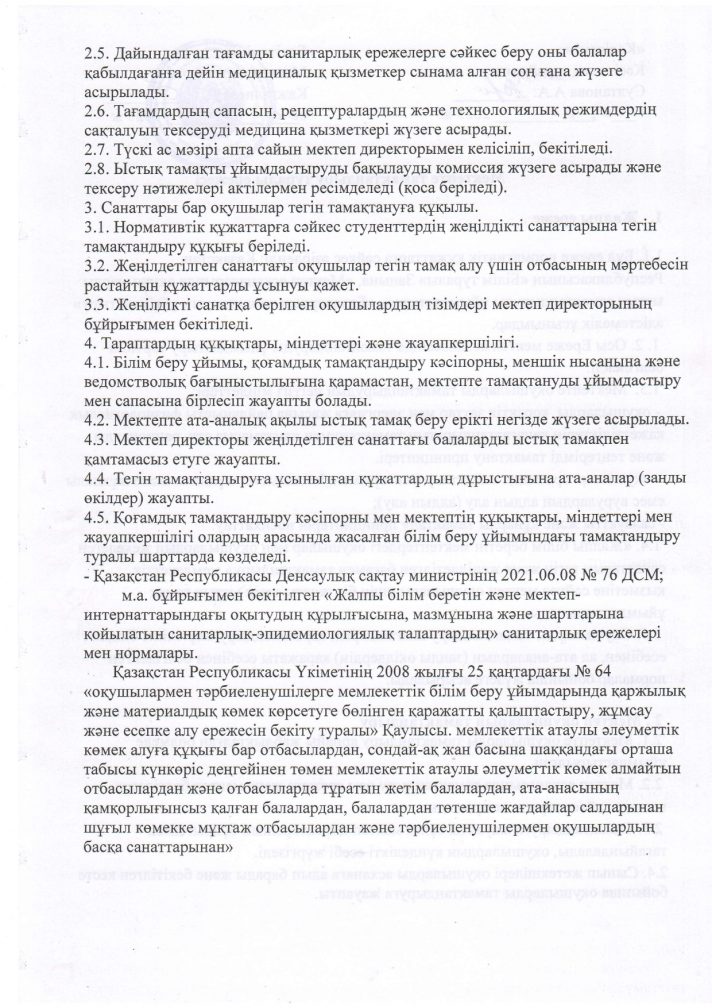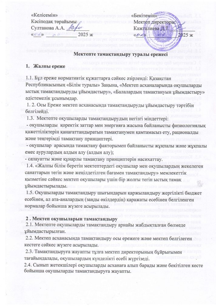 Мектепте тамақтандыру туралы ережесі