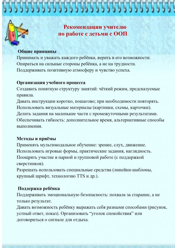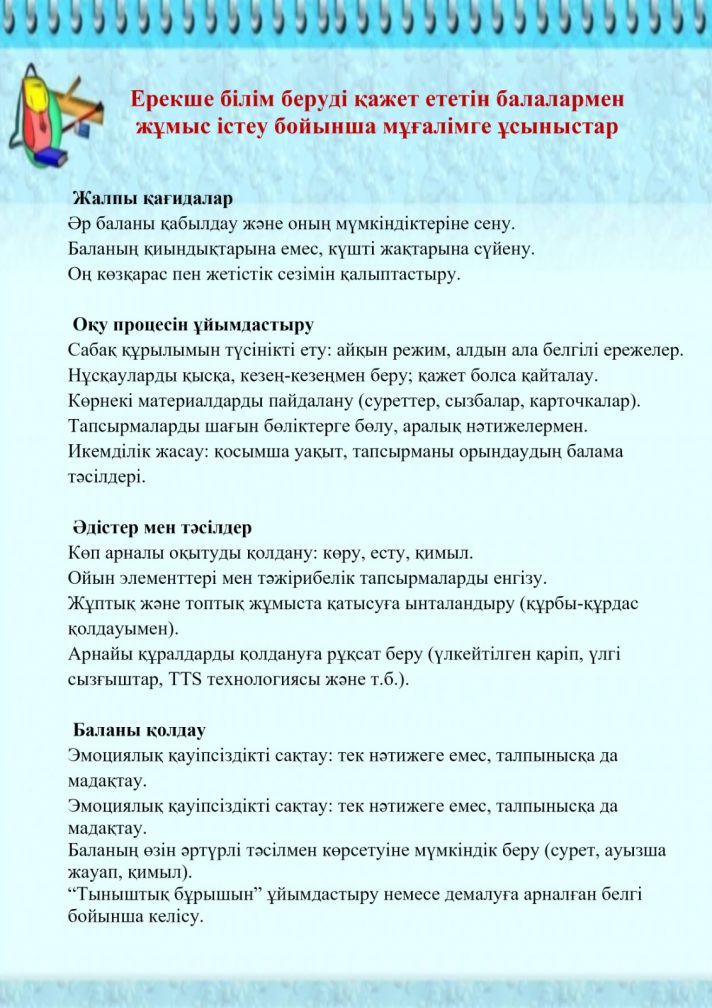 Ерекше білім беруді қажет ететін балалармен жұмыс істеу бойынша мұғалімге ұсыныстар