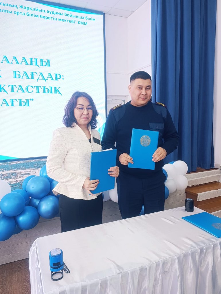 13 қаңтар күні мектебіміздің базасында «Кәсіптік бағдар беру – ынтымақтастық аумағы» атты диалогтік алаңы өтті. Іс-шараға өңірдің жетекші жоғары оқу орындары мен мемлекеттік құрылымдарының өкілдері қатысты: Қостанай қаласындағы Шырақбек Қабылбаев атындағы Қазақстан Республикасы ІІМ академиясы, Ыбырай Алтынсарин атындағы Арқалық педагогикалық университеті, Зұлхарнай Алдамжаров атындағы Қостанай әлеуметтік-техникалық университеті, Абай Мырзахметов атындағы Көкшетау университеті, сондай-ақ Жарқайың ауданы полиция бөлімінің, Жарқайың ауданы төтенше жағдайлар бөлімінің және Державин станциясындағы желілік полиция бөлімшесінің өкілдері.